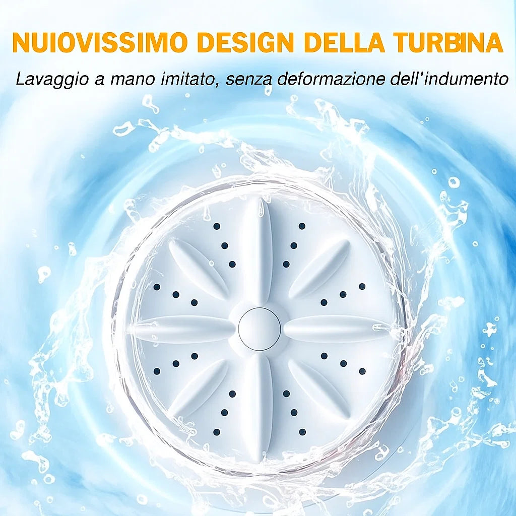 Il design compatto e il pulsante rotante imitano il lavaggio manuale, garantendo pulizia efficace e cura per ogni tipo di capo.